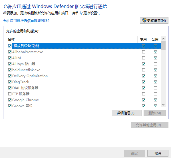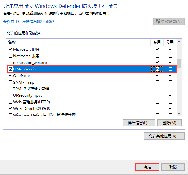3、在列表中查找奧維應(yīng)用程序OMapService.exe,如果沒有則點(diǎn)擊右上角的“更改設(shè)置”然后點(diǎn)擊“允許其它應(yīng)用”添加應(yīng)用程序到列表。