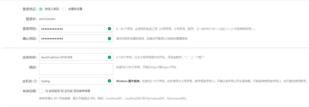 系統(tǒng)信息:設(shè)置實(shí)例名稱、管理員密碼等信息,此處管理員用戶名和密碼用于遠(yuǎn)程登錄云主機(jī)。