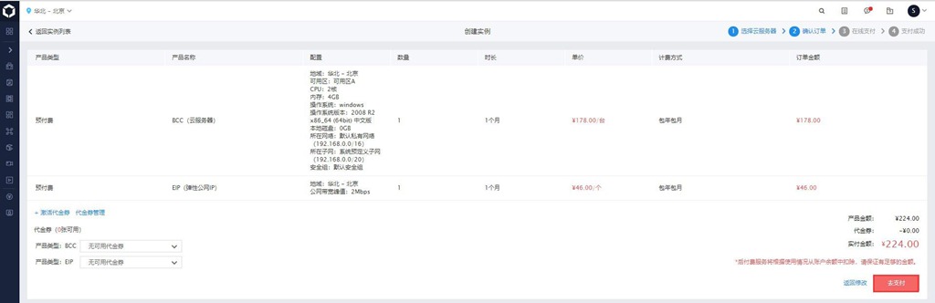 購買信息:選擇購買時(shí)長和數(shù)量。設(shè)置完所有信息后,點(diǎn)擊【下一步】。