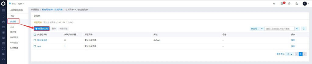 購買完成后,進(jìn)入控制臺(tái),點(diǎn)擊【安全組】,點(diǎn)擊【新建】,新建安全組,如下圖所示。