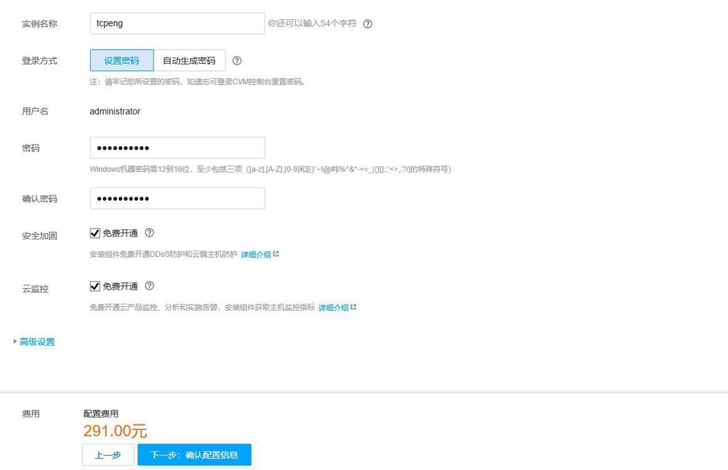 設(shè)置實(shí)例名稱、登錄方式、登錄密碼等項(xiàng)。完成后,點(diǎn)擊【下一步:確認(rèn)配置信息】。