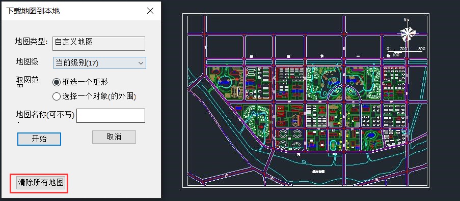 在[下載地圖到本地]窗口,點(diǎn)擊【清除所有地圖】,并關(guān)閉[下載地圖到本地]窗口,可將加載的地圖清除。