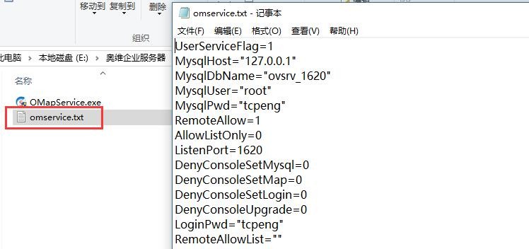 設(shè)置完成企業(yè)服務(wù)器相關(guān)參數(shù)后,可在omservice.txt文件中查看相關(guān)配置信息。