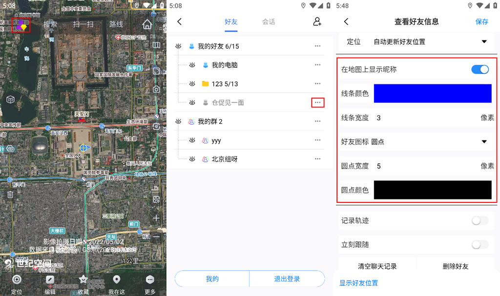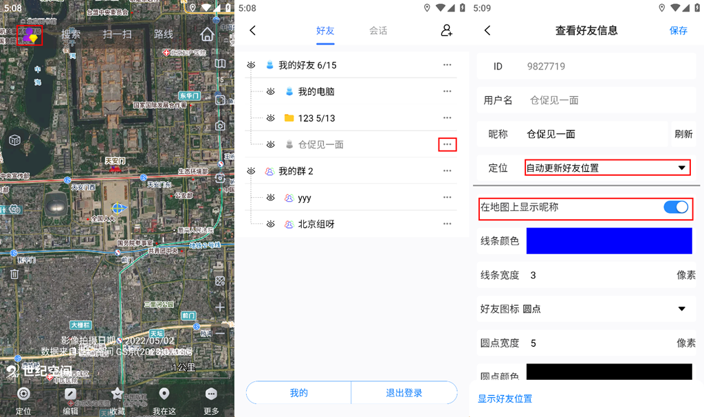 顯示昵稱:勾選,在地圖顯示好友昵稱;不勾選,在地圖上不顯示好友昵稱。