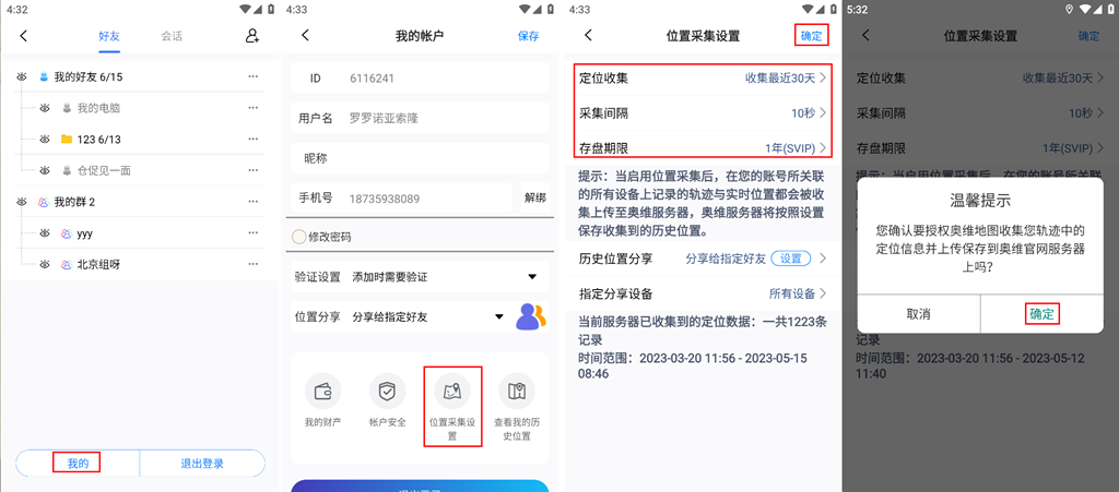 登錄賬戶后,在[好友]頁面,點(diǎn)擊【設(shè)置】,點(diǎn)擊【位置采集設(shè)置】,設(shè)置定位收集、采集間隔、存盤期限等。