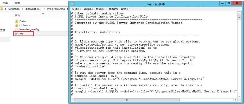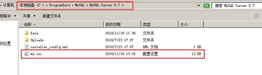 MySQL數(shù)據(jù)庫默認安裝在C盤,my.ini文件默認目錄C:\ProgramData\MySQL\MySQL server 5.7