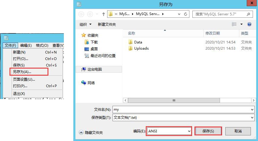 點擊【文件】—>【另存為】,編碼選擇【ANSI】,保存。