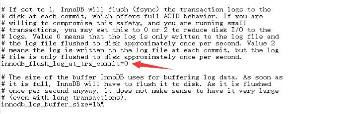 innodb_flush_log_at_trx_commit=0:每秒將日志緩沖區(qū)寫入log file,并同時flush到磁盤。跟事務提交無關。在機器crash并重啟后,會丟失一秒的事務日志數(shù)據(jù)(并不一定是1s,也許會有延遲,跟操作系統(tǒng)調度有關)。