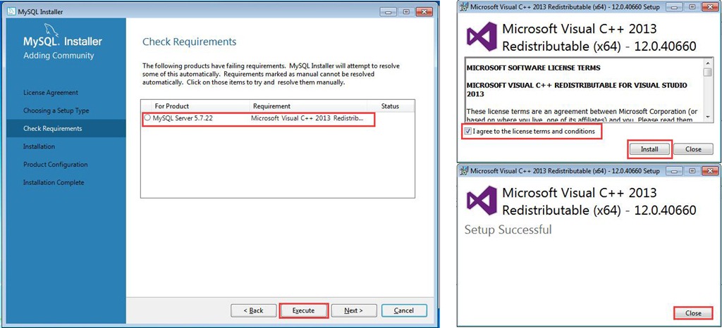 若您在公網(wǎng)(在線)環(huán)境下安裝,直接安裝MySQL數(shù)據(jù)庫軟件即可,在安裝的過程中,會自動安裝Microsoft Visual C++ 2013 Redistributable插件。
