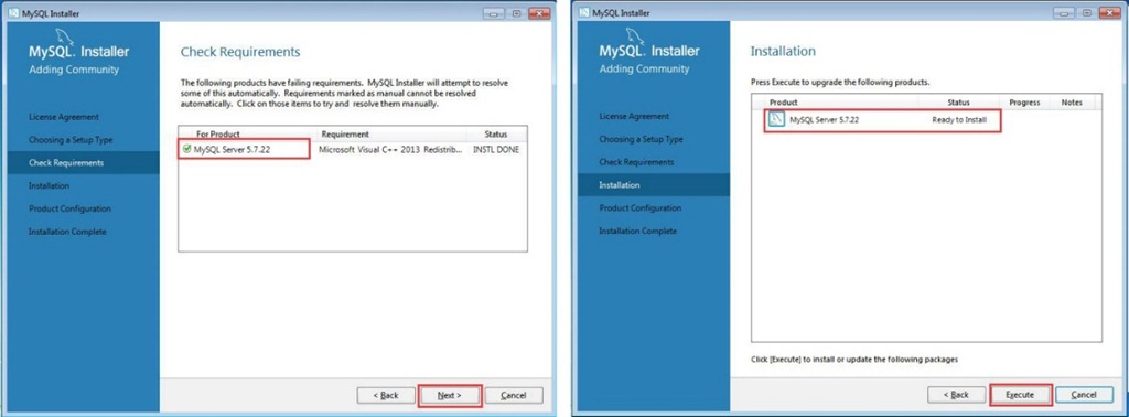 點擊【Next(下一步)】按鈕,點擊【Execute】按鈕,執(zhí)行安裝MySQL Server 5.7.22。