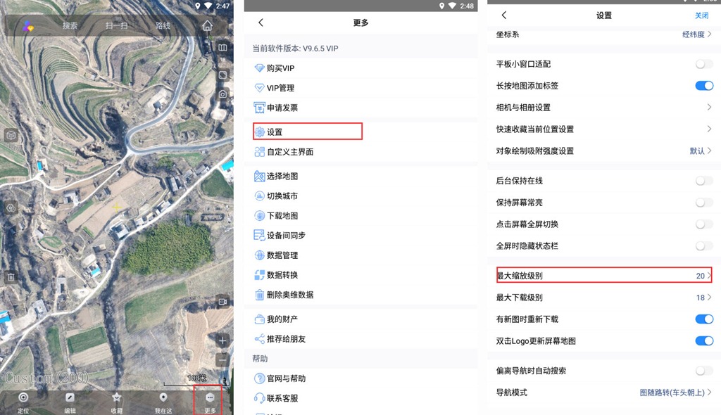 在奧維主界面上,點(diǎn)擊【更多】,點(diǎn)擊【設(shè)置】,點(diǎn)擊【高級(jí)功能】,點(diǎn)擊【最大縮放級(jí)別】,將級(jí)別調(diào)高即可。
