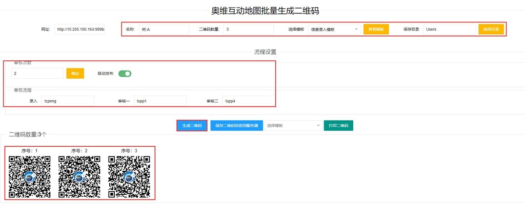 登錄企業(yè)服務器后,點擊【二維碼】,點擊【生成二維碼】,進入[奧維互動地圖批量生成二維碼]頁面。