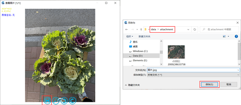 若用戶需要將照片保存到附件庫,那么保存文件夾就選擇奧維根目錄下的attachment文件夾。