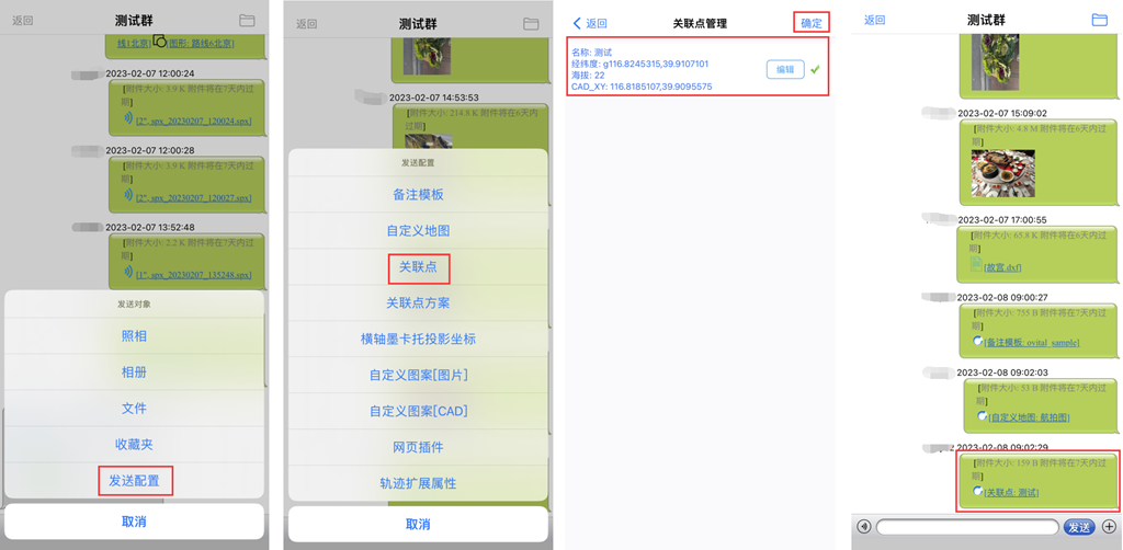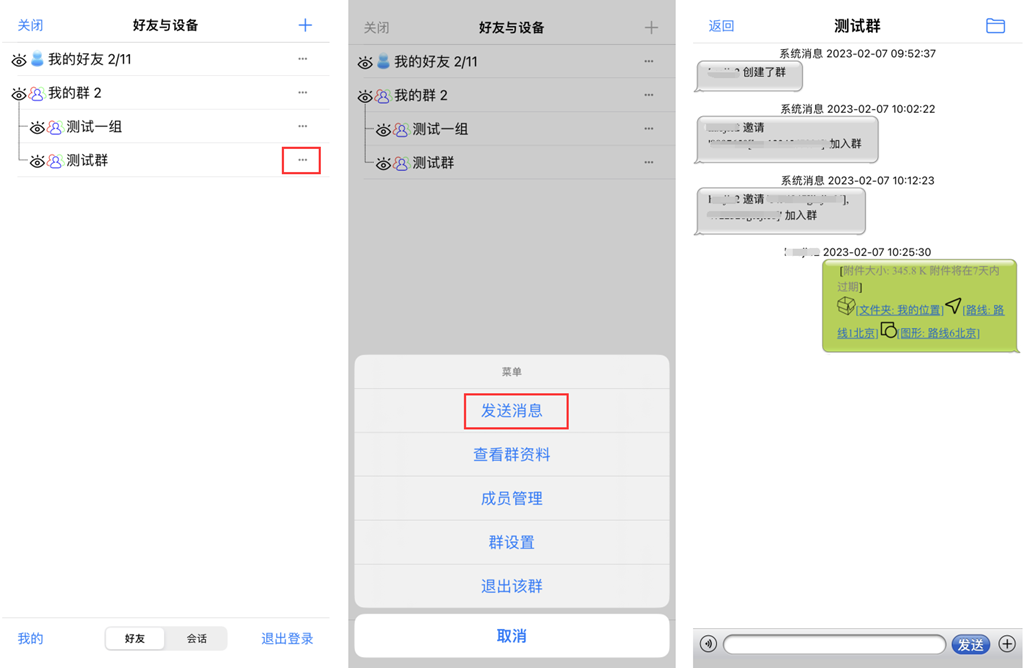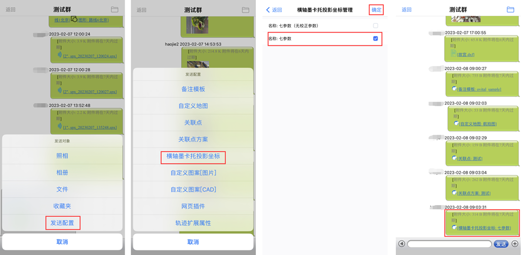 群成員可將設(shè)備上的橫軸墨卡托投影坐標(biāo)發(fā)送到群中,其他成員可下載使用該橫軸墨卡托投影坐標(biāo)。