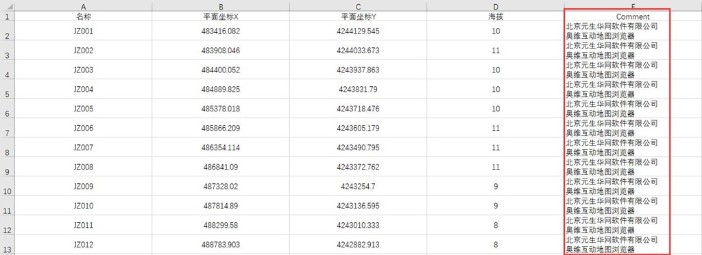 如果還有對每個點(diǎn)的說明信息,可以作為備注導(dǎo)入到奧維中,備注信息可以為多列屬性。則屬性排列順序如下: