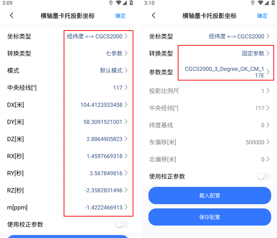 左側(cè)為七參數(shù),右側(cè)為固定參數(shù)。