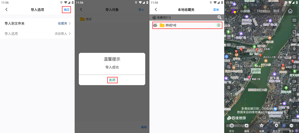 進(jìn)入[導(dǎo)入選項]頁面,點(diǎn)擊【確定】,執(zhí)行導(dǎo)入。導(dǎo)入完成后,數(shù)據(jù)會保存在收藏夾中,顯示在地圖上。