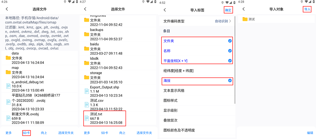 3. 手機(jī)端導(dǎo)入TXT坐標(biāo)文件