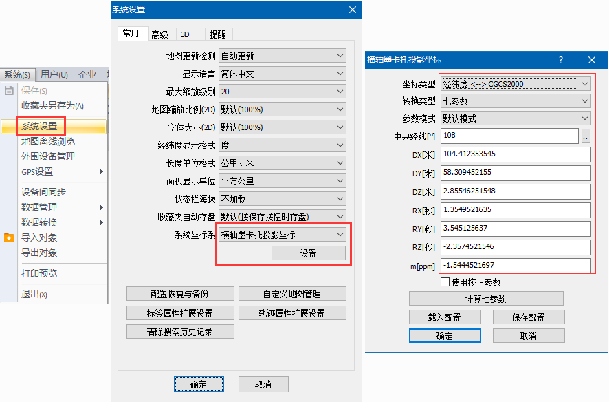 在奧維互動(dòng)地圖PC端中,點(diǎn)擊[系統(tǒng)]菜單,點(diǎn)擊【系統(tǒng)設(shè)置】,進(jìn)入[系統(tǒng)設(shè)置]窗口;在[常用]選項(xiàng)卡中,點(diǎn)擊【系統(tǒng)坐標(biāo)系】下拉框,選擇【橫軸墨卡托投影坐標(biāo)】,點(diǎn)擊【設(shè)置】按鈕,進(jìn)入[橫軸墨卡托投影坐標(biāo)]設(shè)置窗口。用戶即可設(shè)置需要的坐標(biāo)系。