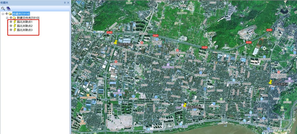 點擊【確定】,系統(tǒng)執(zhí)行導(dǎo)入文件;導(dǎo)入完成后,數(shù)據(jù)會保存在收藏夾中,顯示在地圖上。