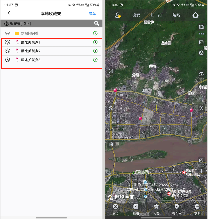 導(dǎo)入完成后,數(shù)據(jù)會顯示在地圖上,保存在收藏夾中。
