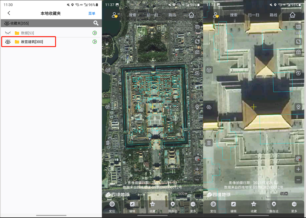 在收藏夾中點(diǎn)擊文件夾右側(cè)的圖片1按鈕,進(jìn)入文件夾設(shè)置頁(yè)面,點(diǎn)擊【在地圖上整體移動(dòng)】,提示“您確定要在地圖上整體移動(dòng)?”,點(diǎn)擊確定,在地圖上會(huì)出現(xiàn)“上下左右”操作按鈕。