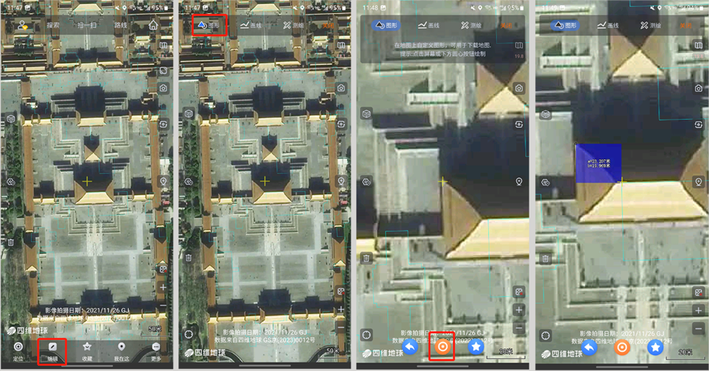 通過(guò)放大,縮小,移動(dòng)地圖等操作可將操作面板的“圓圈”按鈕移動(dòng)到參照對(duì)象處。