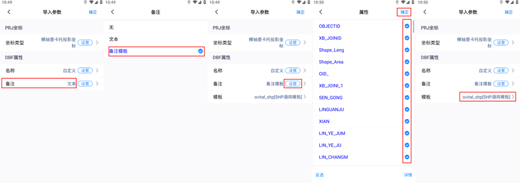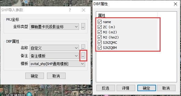 我們選擇【備注模板】,點擊【…】,勾選需要導入的屬性字段,點擊【確定】。