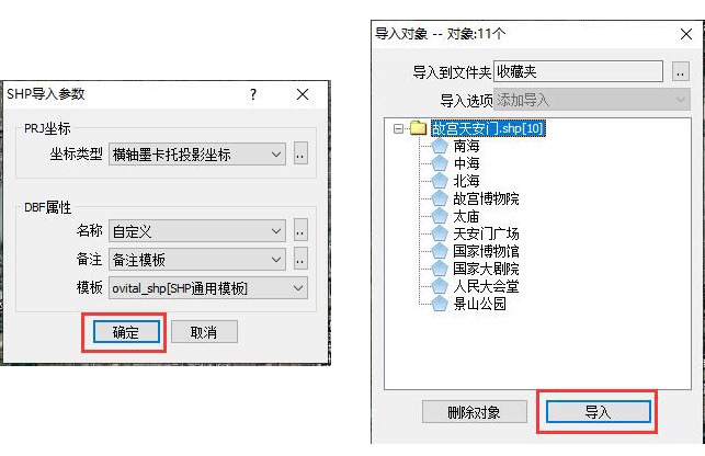 設(shè)置好PRJ坐標和DBF屬性后,點擊【確定】,點擊【導入】,即可。