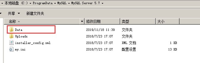 進(jìn)入到C:\ProgramData\MySQL\MySQL Server 5.7目錄下,復(fù)制Data文件夾。