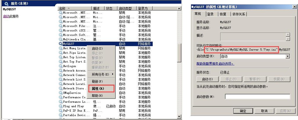 若my.ini文件不在該目錄下,可以在服務(wù)中查看其路徑,如下圖所示。