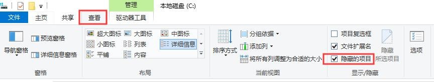 點(diǎn)擊【查看】,勾選【隱藏的項(xiàng)目】。