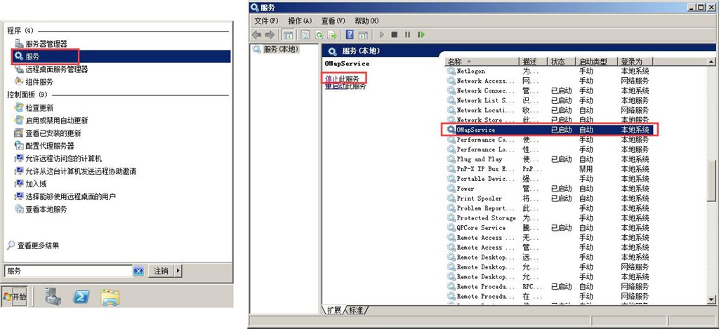1、停止MySQL服務(wù)和OMapService服務(wù)