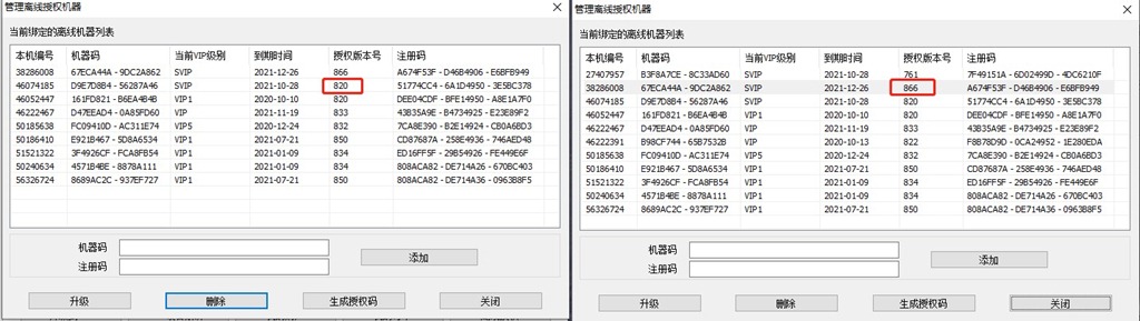 我們可以看到,該機(jī)器的授權(quán)版本號(hào)會(huì)變成866,即當(dāng)前電腦B上安裝的奧維軟件版本。