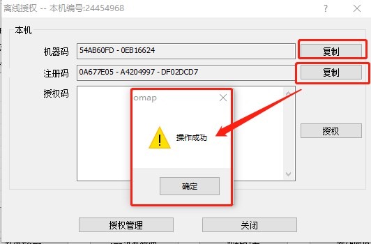 點(diǎn)擊【復(fù)制】,分別復(fù)制機(jī)器碼和注冊(cè)碼。