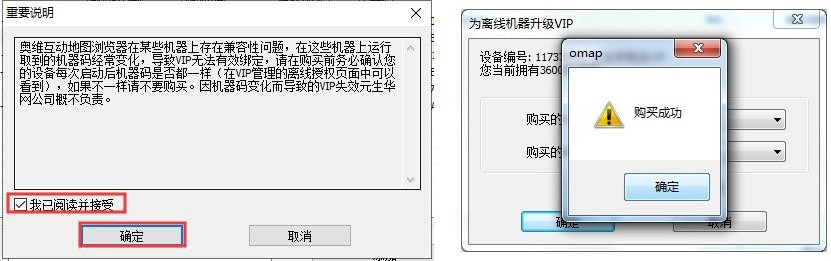 勾選【我已閱讀并接受】,點(diǎn)擊【確定】按鈕;購(gòu)買完成后,系統(tǒng)提示“購(gòu)買成功”。