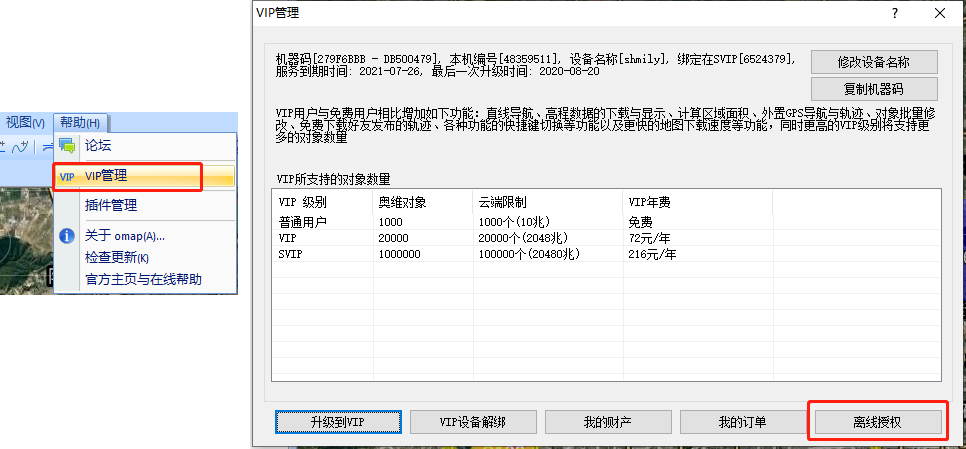 點(diǎn)擊[幫助]—>點(diǎn)擊【VIP管理】—>【離線授權(quán)】。