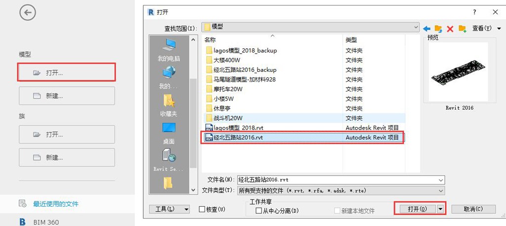 點(diǎn)擊【打開(kāi)】,選擇要打開(kāi)的文件,點(diǎn)擊【打開(kāi)】,在Revit中加載此模型。