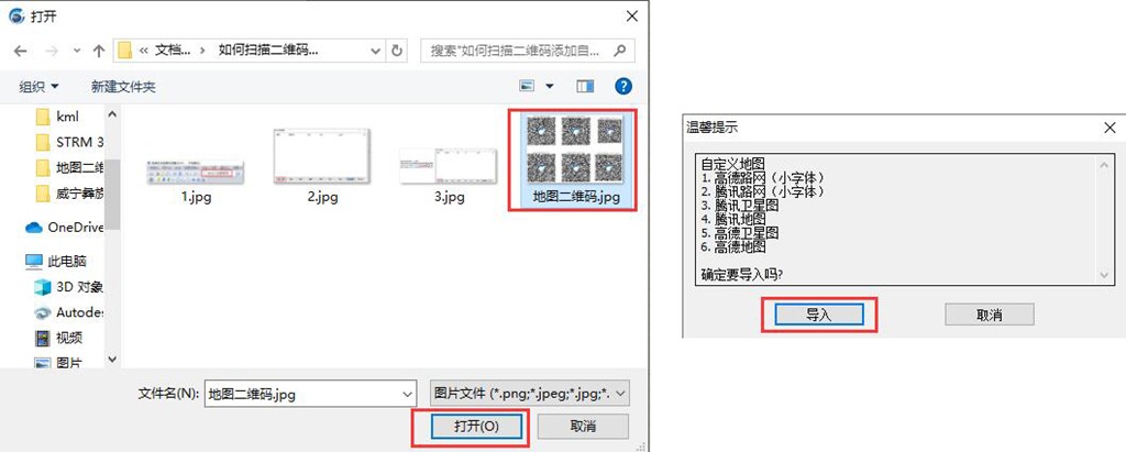 選中您的地圖二維碼文件,點擊【打開】—>【導入】,即可。