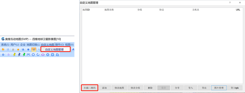點擊[自定義地圖]—>【自定義地圖管理】—>【掃描二維碼】。