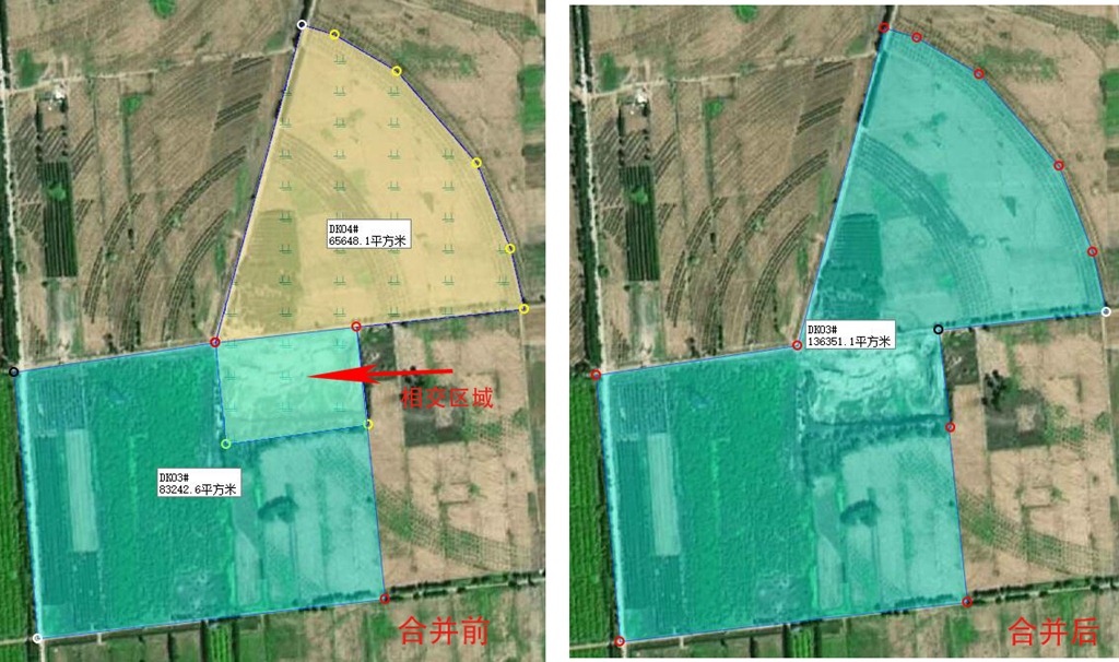 合并 2個(gè)及以上 優(yōu)化臨近點(diǎn),刪除舊圖形 重新統(tǒng)計(jì)新生圖形對(duì)象的頂點(diǎn)個(gè)數(shù)、區(qū)域個(gè)數(shù)、周長(zhǎng)、面積等