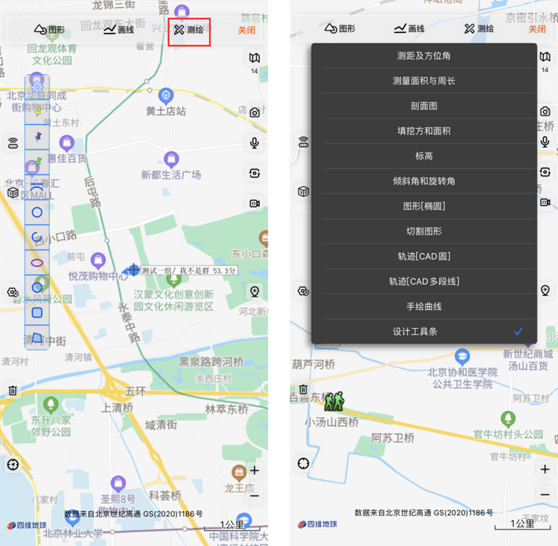 (3)測繪:點(diǎn)擊“測繪”選擇自己所需功能