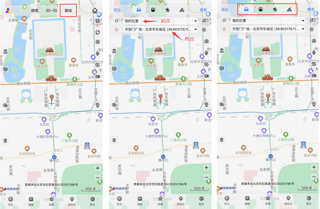 輸入起點(diǎn)和終點(diǎn),選擇出行方式,點(diǎn)擊“搜索”