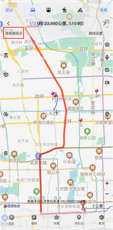 路線中如需經(jīng)過某地,可以點(diǎn)擊“添加途徑點(diǎn)”
