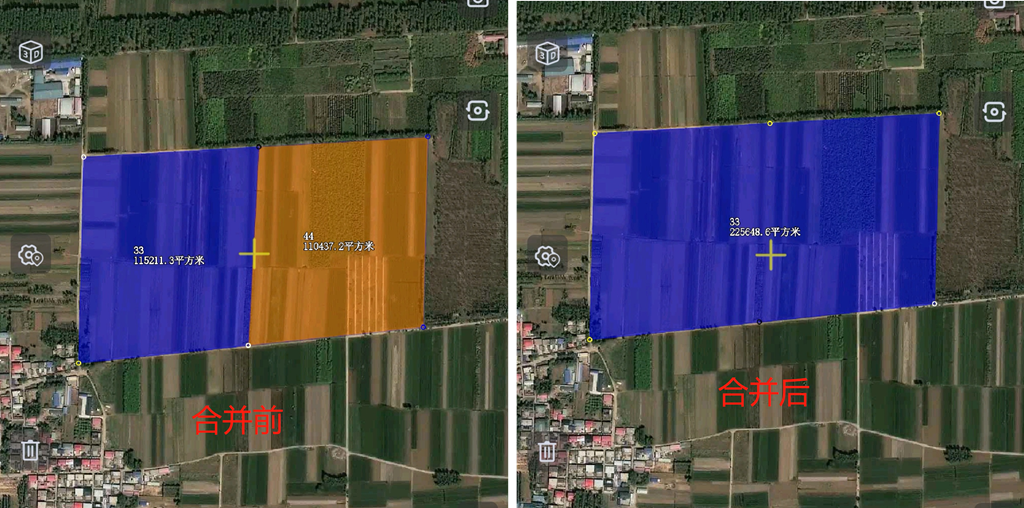 合并 2個及以上 優(yōu)化臨近點,刪除舊圖形 重新統(tǒng)計新生圖形對象的頂點個數(shù)、區(qū)域個數(shù)、周長、面積等