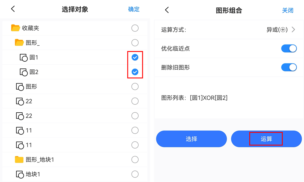 勾選需要合并的圖形,點擊【確定】→【運算】,提示“操作成功”即可。