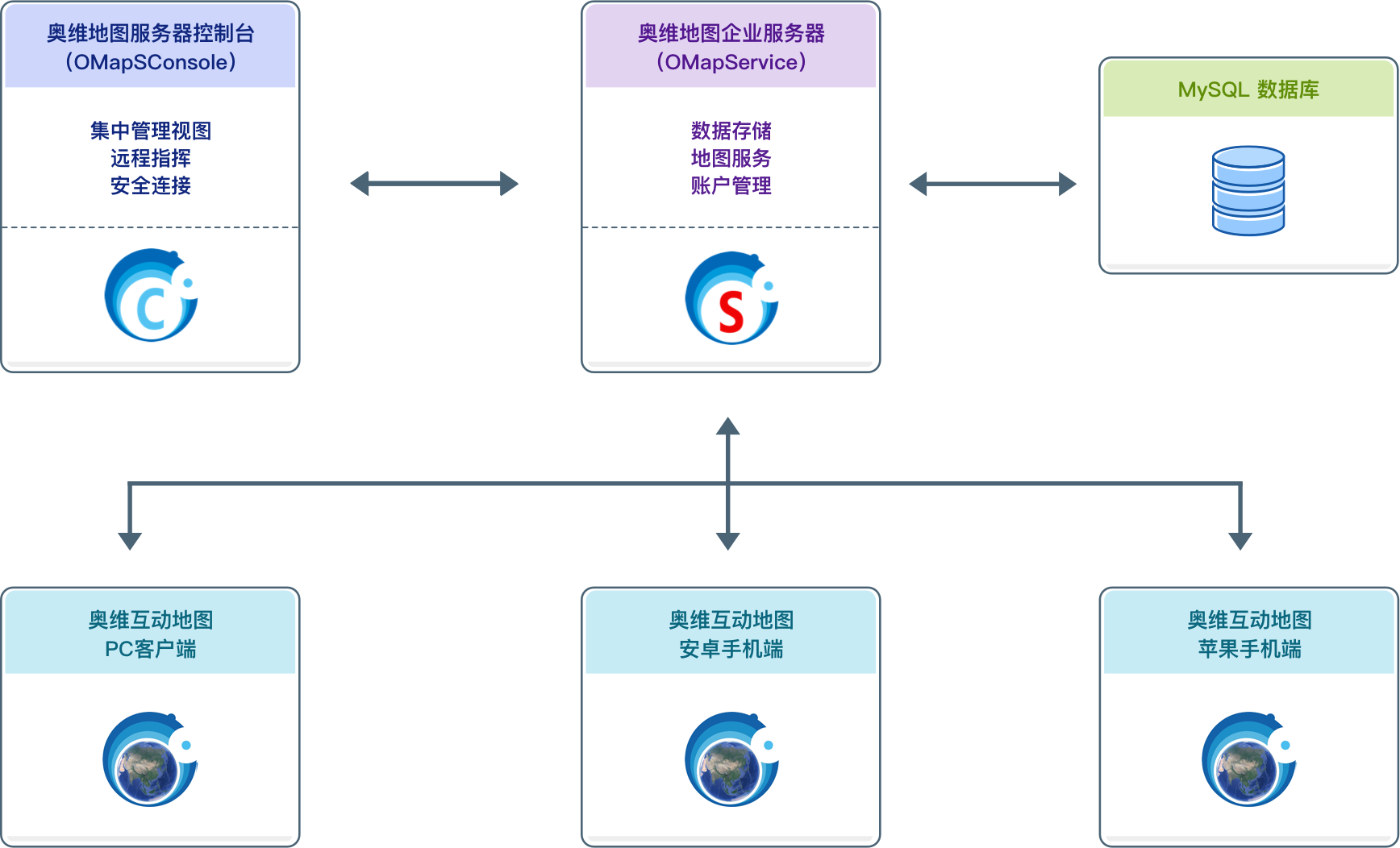 奧維互動(dòng)地圖企業(yè)方案是基于客戶自部署的奧維互動(dòng)地圖服務(wù)器套件,為企業(yè)用戶提供的全方位解決方案。通過允許企業(yè)自己架設(shè)服務(wù)器,并由企業(yè)自主來運(yùn)維,可實(shí)現(xiàn) 安全的數(shù)據(jù)管理,集約化的數(shù)據(jù)共享管理,嚴(yán)格的權(quán)限控制,方便的遠(yuǎn)程協(xié)助,多級(jí)拓?fù)浣Y(jié)構(gòu),企業(yè)內(nèi)網(wǎng)部署,集中授權(quán),它由服務(wù)器組件,控制臺(tái)組件,數(shù)據(jù)庫組件以及客戶端組成。
